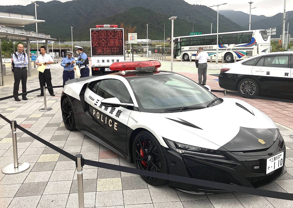 NSXのパトカー(車番110番なんですね)や白バイ、ヘリコプターも参加して安全運転をPR!